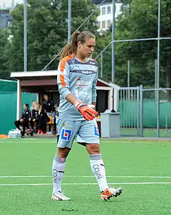 Katlynn Loretta Fraine (born December 3, 1987) is an American soccer goalkeeper who plays in the SWPL for Hibernian. Fraine graduated from University of Florida and spent the 2011 season with Women's Professional Soccer (WPS) club Atlanta Beat. She moved to Sweden in 2012 and played successfully for Mallbackens IF and Linköpings FC[2] before joining Vittsjö in December 2015.[3]