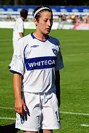 Katie Thorlakson (born January 14, 1985, in New Westminster, British Columbia) is a Canadian retired soccer forward, who last played for Melbourne Victory FC. Thorlakson won two medals with the Canadian women's national soccer team at the Pan American Games in 2003 and 2007. She played collegiately soccer for the University of Notre Dame women's soccer team, where she record 73 assists, second most in school history. In 2004, she won the Soccer America Player of the Year Award, awarded to the best player in collegiate soccer for that year.
