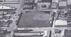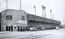 - In 1954, the park re-opened for baseball, having been completely rebuilt after the previous year's tornado. This photo shows the new grandstands.