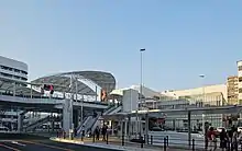 From November 2012, work commenced on remodelling the west side of the station, with redesigned segregated access and parking for private cars, buses, and taxis, and an elevated pedestrian walkway leading directly from the station building.[27] The walkway and new upper-level west entrance opened on 26 March 2014.[28]