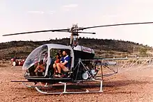The Kawasaki KH-4 was a light utility helicopter produced in Japan in the 1960s as a development of the Bell 47 that Kawasaki had been building under licence since 1952. The most visible difference between the KH-4 and its forerunner was its new and enlarged cabin. This was fully enclosed (although the side doors were removable) and provided seating for three passengers side-by-side on a bench seat behind the pilot's seat. The helicopter was provided with a new control system, revised instrumentation, and larger fuel tank.[2]