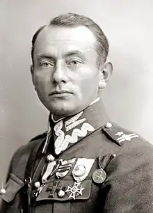 Kazimierz Władysław Mastalerz (20 November 1894 in Czeladź or Sosnowiec – 1 September 1939 at Krojanty) was a Polish military commander of the 18th Pomeranian Uhlan Regiment.