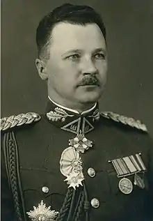 ![]() Kelpša photographed with uniform of the Brigadier General of the Lithuanian Army and state awards | |