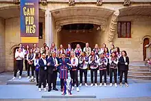 The Champions League-winning Barcelona squad being received by the Catalan president in June 2023