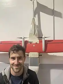 ![]() Keller beside Zipline's fifth generation drone | |