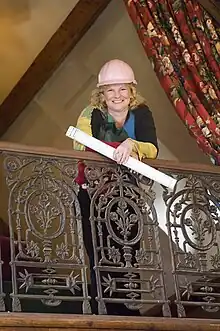 She designed a garden bench with open lattice sides, a solid back and roof called a "Love Cupboard" based on a bench designed by William Kent for Rousham Gardens during the early 18th century. Her covered bench design has been featured in many national publications.[2][3][4][5]