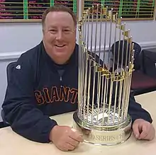 Joyce joined the San Francisco Giants in 2010 as hitting coach for the AAA Fresno Grizzlies of the Pacific Coast League earning his first of three World Series rings with the Giants.[10] He then returned to the Eastern League as the hitting coach for the AA Richmond Flying Squirrels from 2011 to 2016 and was selected as the hitting coach for the Scottsdale Scorpions of the 2011 Arizona Fall League where he worked with Mike Trout and Bryce Harper who became 2012 NL and AL Rookies of the Year.[11] In 2016 he stepped way from professional baseball to spend time with his family.[12]