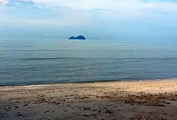 Kendi Island viewed from Pasir Belanda, Teluk Kumbar in April 2022