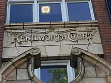 Kenilworth Court was designed by architect R. C. Overton, it was built from 1902[3] and completed by 1905.[4] The building has Dutch gables, bracketed stone balconies, stone architraves over the windows and iron railings, with 'Kenilworth Court' displayed over the entrance to each block.[5] There are 150 portered flats[6] spread between eight mansion blocks.[7] The central courtyard had a tennis court before World War II, it was then used for growing vegetables and is now managed garden.[8]