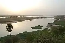 The Niger River, Kennedy Bridge and some of Niamey City Centre (right), taken from the roof of the UNV building, looking northwest. May 2006