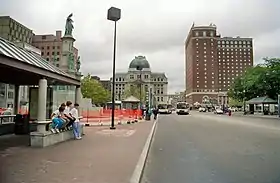 Kennedy Plaza, formerly Exchange Place, Exchange Terrace, or City Hall Park, is a rectangular public square that occupies a central portion of Downtown Providence, Rhode Island. Since the mid 19th century, the plaza has served as a civic and transportation hub.[1]