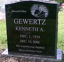 - 1 2 3 4 5 Wood, Sam. "Kenneth Gewertz, 72, 'Mr. Deptford'", The Philadelphia Inquirer, December 14, 2006. Accessed September 16, 2016. "Kenneth Gewertz, 72, a bigger-than-life Gloucester County politician known as 'Mr. Deptford,' died in his sleep Tuesday night at his winter home in Orlando, Fla., from a heart attack.... Many credit him with helping turn Gloucester County from a backwater chock-a-block with pig farms into one of the fastest-growing suburban counties in America."