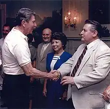 ![]() Madsen shaking hands with U.S. President Ronald Reagan | |