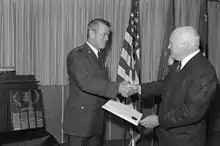 Three years later he was transferred to Headquarters U.S. Air Forces in Europe as an operations staff officer. Returning from Europe in 1962, he entered the Marine Corps Senior Staff School, Quantico, Virginia, completing it a year later. He then had a series of operational duties in the United States until 1965 when he became executive assistant to the commander, Military Assistance Command, Vietnam, in Saigon.