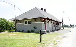 Kershaw Depot, also known as the Southern Railway Depot, is a historic train station located at Kershaw, Lancaster County, South Carolina. It was built in 1926, by the Southern Railway, and is the second or third depot built in Kershaw. The interior plan consists of a central ticketing area flanked by white and "colored" waiting areas. The Southern Railway sold the depot in 1945, and it has since been used as a florist and craft shop.[2][3]