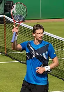 Kevin Michael Anderson (born 18 May 1986) is a South African professional tennis player. He achieved his career-high Association of Tennis Professionals (ATP) ranking of world No. 5 on 16 July 2018.[2] He was the first South African to be ranked in the top 5 since Kevin Curren was No. 5 on 23 September 1985.On 6 February 2011, Anderson defeated Somdev Devvarman in his hometown of Johannesburg to capture the South African Open title for his first ATP Tour-level title. His second ATP title came at the 2012 Delray Beach Open when he defeated Marinko Matosevic. Anderson won his third championship in 2015 at the Winston-Salem Open with a victory over Pierre-Hugues Herbert. He ended 2017 winning the exhibition World Tennis Championship. His fourth title came in February 2018 at the New York Open. Anderson reached his maiden Grand Slam final at the 2017 US Open, where he lost to Rafael Nadal.[3] In the 2018 Wimbledon semifinals, Anderson reached his second major final by defeating American John Isner in the second-longest match in the history of major tournaments. The match, which lasted 6 hours and 36 minutes, was only beaten in length by the 2010 match between Isner and France's Nicolas Mahut. He then lost to Novak Djokovic in the final in straight sets. On 3 May 2022, Anderson retired at age 35[4] but he announced his comeback in July 2023.