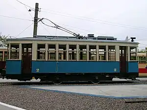 Kh (Russian: Х) was the class of double axled high-floor tramcars, which were built in Soviet Union in interbellum period. First vehicles were built in 1927 and delivered to Kharkov, Ukraine. First letter of city name, Cyrillic Х (usually transliterated as Kh), was selected as a designation of whole series. After Kharkiv, tramcars of this type were supplied to many Soviet cities and became most numerous in the fleets of many municipalities. In 1941, after the onset of Operation Barbarossa, their production was stopped for maximizing war efforts. The Kh-class tramcars were finally withdrawn from the city service in the mid-1960s as they had become operationally obsolete; their sturdy construction would have allowed them to be used much longer, but tram systems preferred more modern, better riding, newer trams. A small number of surviving cars are preserved for museum purposes in Moscow, Nizhniy Novgorod, Saratov and a few other cities.