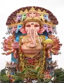 The 2019 Ganesh idol was the tallest idol at Khairtabad.[21] The 61 feet (19 m)[lower-alpha 1] idol was constructed at a cost of 1 crore (US$130,000) and around 40 lakh (4 million) devotees visited the idol during the 10-day festival.[2] It was also the tallest Ganesh idol in India that year.[3]