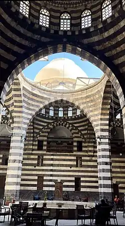 Khan As'ad Pasha (Arabic: خَان أَسْعَد بَاشَا, romanized: Khān ʾAsʿad Bāşā) is the largest caravanserai (khān) in the Old City of Damascus,[1] covering an area of 2,500 square metres (27,000 sq ft). Situated along Al-Buzuriyah Souq, it was built and named after As'ad Pasha al-Azm, the governor of Damascus, in 1751–52.[2] Khan As'ad Pasha has been described as one of the finest khans of Damascus,[3] and the most "ambitious" work of architecture in the city.[4]