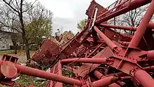 Kherson TV Tower (Ukrainian: Херсонська телевежа "Kherson TV Tower") was a 199 m (653 ft) tall steel space framed truss communications tower located in the Ukrainian city of Kherson.[2][3][4] The building was uniquely built, having been built by using the cross bracing system.[2] The tower was a truss TV tower, specifically, a Vierendeel truss tower, wherein a structure's members are not triangulated but form rectangular openings instead (see Vierendeel Truss).[2] The tower had an antenna that measured 199.95 m (656 ft) and a roof that measured 189.89 m (623 ft).[2][3] The tower possessed a total height of 200 m (656 ft), and was the tallest structure in the Kherson Oblast.[2]
