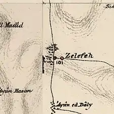 Khirbat Zalafa (Arabic: خربة زلفة) was a small Palestinian Arab village in the Tulkarm Subdistrict, located about 15 kilometers (9.3 mi) northwest of Tulkarm. It was depopulated during the 1948 Palestine war. It was occupied by Yishuv forces on April 15, 1948 as a part of operation "Coastal Clearing."[5]