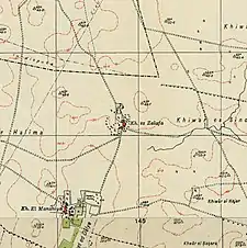 1870s map 1940s map modern map 1940s with modern overlay mapA series of historical maps of the area around Khirbat Zalafa (click the buttons) | |