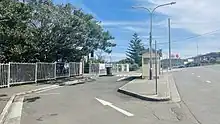 The island platform generally has a concrete face but its face is open at the northern end. The platform surface is asphalt.[7]