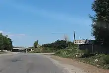 Sign telling the city limits of Kichi Jargylchak village from the north