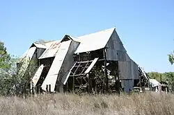 Another group of abandoned buildings, including three timber-frame houses, are located about 250 metres (820 ft) south of the battery. This group has a cohesive layout resembling a homestead. An airstrip has been graded over the northern section of the town site.[1]