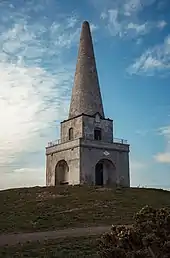 Crowned by a monument, Killiney Hill is 153 metres high and has views over the surrounding areas: Dublin to the northwest; the Irish Sea and the mountains of Wales (on a clear day) to the east and southeast; and Bray Head and the Wicklow Mountains to the south. The hill was higher in the past but material was removed from the summit for the construction of the pier at Dún Laoghaire.[1] The obelisk was completed in 1742 and commemorates the victims of the Irish Famine of 1740-41.
