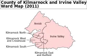 The electoral wards in the Kilmarnock and Irvine Valley constituency are listed below. All of these wards are part of East Ayrshire:[2]