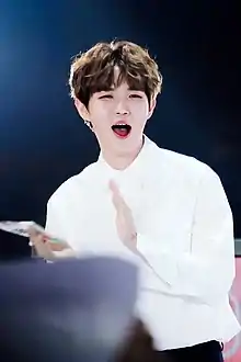 Kim Jae-hwan (Korean: 김재환, born May 27, 1996), known mononymously as Jaehwan (재환), is a South Korean singer-songwriter, known for finishing fourth in Produce 101 (season 2). He is a former member of the South Korean boy group Wanna One.[1] As the group promoted for a year and a half, it achieved both critical and commercial success with all four of its albums topping South Korea's Gaon Album Chart and all five of its lead singles ranking in the top three of South Korea's Gaon Digital Chart.