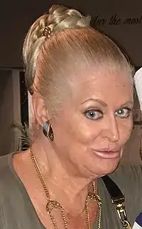 In 2006, Woodburn wrote an autobiography, Unbeaten, which detailed her early life.[1] She has appeared in various pantomimes in theatres all over the UK. Her first pantomime performance was in the Cinderella as an Ugly Sister, alongside television co-star Aggie MacKenzie, at the Theatre Royal in Brighton. It ran from 7 December 2007 to 6 January 2008.[26] From 15 December 2010 to 3 January 2011, she made her second appearance in pantomime in Cinderella at the Woodville Halls Theatre in Gravesend, where played the Fairy Godmother. From 11 December 2012 to 26 December, she played the Wicked Stepmother in Cinderella at the Grimsby Auditorium.[27] She performed in pantomime for the fourth time at the Southport Theatre in Jack and the Beanstalk as Fairy Starlight. The season ran from 13 December 2013 to 31 December 2013. From 2014 to 2015, she played Fairy Liquid in Snow White and the Seven Dwarfs at The Brindley in Runcorn, followed by a 2019 appearance at the Epstein Theatre in Liverpool as the Wicked Queen in Snow White and the Seven Dwarfs.[28] In 2022, Woodburn released a range of cleaning products at Poundland.[29]