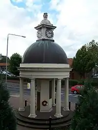 One of Kimberley's most notable structures is its unusual war memorial, in the form of a rotunda which is used as the emblem of Kimberley School. This secondary school has a catchment area which extends into the neighbouring areas of Nuthall, Eastwood, Watnall, and Hempshill Vale.