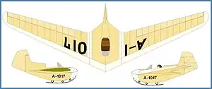 The Kimura HK-1 was a glider built in Japan in 1939 to investigate the possibilities of tailless aircraft. It was a single-seat design with an open cockpit, swept wings, and a single tail fin. The HK-1 made a total of 169 test flights between 15 December 1939 and 7 March 1940, towed aloft behind a car.