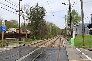 A stop was established at Kings School when the Pittsburgh Railways interurban line from Charleroi to Pittsburgh was opened through Bethel Park on September 12, 1903. Passengers initially changed at Castle Shannon to continue their journey to Downtown via the Pittsburgh and Castle Shannon Railroad.[2] It was cut back to Library in 1953 and was converted from PCC operation to Light Rail in 1988.[3]