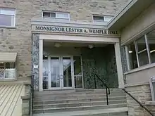 The college's first classes were held in Monsignor Wemple Building. The Monsignor Wemple Building remained the sole educational facility until 1982, when the school began using lecture theatres in Dante Lenardon Hall.[23] The buildings at King's University College vary in age from Wemple Hall which was completed in 1954, to the Darryl J. King Student Life Centre, completed in 2014.[24][25]