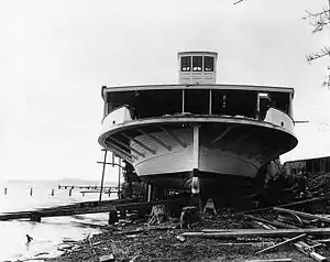 King County was the first true ferry to operate on Lake Washington, in King County, Washington. The ferry was built in 1900 at Madison Park The ferry was launched on March 8, 1900.[1] A mishap occurred during the vessel's launching with a number of notable figures on board, the ferry slid down the ways but rather than floating in the water, became stuck in the mud. The steamer Cyrene had to pull the new ferry free.[2]