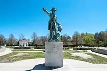 In 1780 General Rochambeau's army of 6,000 French soldiers landed on site of what is now King Park. In the 1897 the heirs of Edward King, the builder of the nearby Edward King House, donated the land for the creation of the park.[1] It was built between 1897 and 1902.[2] August A. Noel designed the bath house.[3] In 1928 the Newport Historical Society erected the monument to General Rochambeau's landing. The large stone pier was originally "dock area for the original America's Cup Regattas when they resumed here after WWII. Hurricanes destroyed the wooden finger dock structures and they were never rebuilt."[4] The substantial stone pier is currently the site of one of the town's dinghy docks and is adjacent to a boat launch ramp.