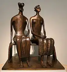 King and Queen (LH 350)[1] is a bronze sculpture by Henry Moore, designed in 1952. It depicts two figures, one male and one female, seated beside each other on a bench, both facing slightly to the left. It is Moore's only sculpture depicting a single pair of adult figures. Moore's records suggest it was originally known as Two Seated Figures.