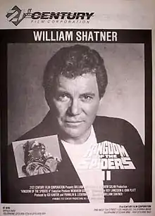 Kingdom of the Spiders is a 1977 American science fiction horror film directed by John "Bud" Cardos and produced by Igo Kantor and Jeffrey M. Sneller. The screenplay is credited to Richard Robinson and Alan Caillou, from an original story by Sneller and Stephen Lodge. Part of the eco-horror subgenre,[4] Kingdom of the Spiders centers on a rural town in Arizona which lies in the migration path of a horde of tarantulas turned aggressive due to pesticides having depleted their normal food sources. The film was released by Dimension Pictures (not to be confused with the distributor Dimension Films). It stars William Shatner, Tiffany Bolling, Woody Strode, Lieux Dressler, and Altovise Davis.[5]