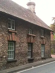 Enough drawings of Kingsweston Inn exist for this building to the south east of the main house to be attributed to Vanbrugh. A series of sketch drawings in Bristol Record Office titled "ale house" compare almost exactly with the built dimensions of the former inn.[23] The Inn was heavily rebuilt in the Nineteenth Century and extended outwards to the south east. The inn closed in the early Twentieth Century and the building was converted into several houses; a use it continues to perform today.