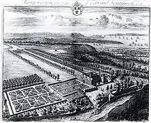 The landscaped grounds developed during the seventeenth century following the purchase of the manor by Sir Robert Southwell in 1679. Robert keenly redesigned the formal gardens with the assistance of John Evelyn[30] including the creation of parterre and 'wilderness' gardens, formal avenues and the laying out of drives through the woodland. Robert's son Edward continued working on the landscape setting to the house following the completion of the new building in about 1720. Bristol Record Office holds a series of drawings illustrating projects to enhance the gardens. This included the construction of Penpole Lodge, the removal of thirty feet of hillside from Kingsweston Hill, and several projects for "Longcombe". The latter show that Edward Southwell was extending the designed landscape southwards to cover the area now known as Shirehampton Park.[30]