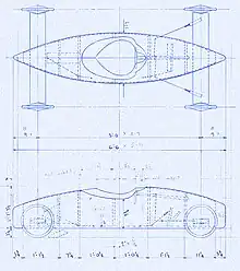 General restrictions concerning the car's construction included a maximum weight of 250 pounds for the car and driver together (verified during a weigh-in prior to the race), an overall length of no more than 72 inches or six feet, a wheelbase of no less than 40 inches, height not to exceed 30 inches and a wheel tread of between 30 and 36 inches. The front axle was mounted on a single kingpin, and directional control governed by steel cables, a single steering column and wheel. No ropes were allowed. The brake was to be a friction or drag type, usually an armature through the floor that was activated by a foot pedal. Wheels were to be the solid rubber type, not pneumatic, and measure no more than 12 inches. Finally the driver was to be seated upright, though the practice was to crouch forward to minimize wind resistance. Pre-race inspections verified that the car was well constructed according to strict observance of the rules, and safe to drive.[11]