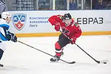 Kaprizov made his Kontinental Hockey League (KHL) debut playing with his hometown club, Metallurg Novokuznetsk, during the 2014–15 KHL season, after being drafted first overall in the 2014 KHL Junior Draft.[4] On 21 August 2015, Kaprizov was signed to a three-year contract extension to remain with Metallurg Novokuznetsk.[5]