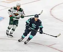 Kirill Olegovich Kaprizov (Russian: Кирилл Олегович Капризов; born 26 April 1997) is a Russian professional ice hockey left winger and alternate captain for the Minnesota Wild of the National Hockey League (NHL). Before joining the Wild, Kaprizov played for Metallurg Novokuznetsk, Salavat Yulaev Ufa and CSKA Moscow in the Kontinental Hockey League (KHL). Kaprizov won the Calder Memorial Trophy as NHL rookie of the year in 2021, becoming the first Wild player to win the award. Fans have nicknamed him "Dollar Bill Kirill" and "Kirill the Thrill".[2]