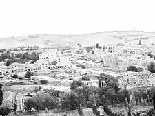 Kirya Ne'emana was hard hit during the Arab riots of 1929. Nineteen residents were killed and buried in a mass grave on the Mount of Olives.[7] Burglaries were rife, homes were destroyed, and three of the area's synagogues were burned.[8] Virtually all the Jewish residents fled the area, save for a handful of Sephardi Jews, and their houses were occupied by Christians and Muslims.[8][12]