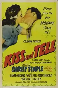 Kiss and Tell is a 1945 American comedy film starring then 17-year-old Shirley Temple as Corliss Archer. In the film, two teenage girls cause their respective parents much concern when they start to become interested in boys. The parents' bickering about which girl is the worse influence causes more problems than it solves.[2]