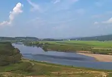The Kitakami River (北上川, Kitakami-gawa) is the fourth largest river in Japan and the largest in the Tōhoku region. It is 249 kilometres (155 mi) long and drains an area of 10,150 square kilometres (3,920 sq mi).[1] It flows through mostly rural areas of Iwate and Miyagi Prefectures. The source of the river is the Mount Nanashigure in northern Iwate, from which it flows to the south between the Kitakami Mountains and the Ōu Mountains.[1] The river is unusual in that it has two mouths, one flowing south into Ishinomaki Bay and the other flowing east into the Pacific Ocean, both in Ishinomaki City.