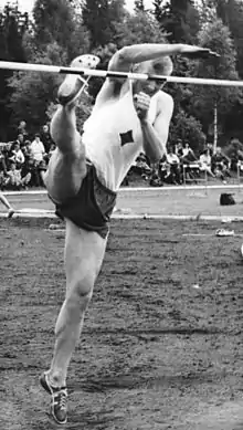 Kjell-Åke Lennart "Sörmarkarn" Nilsson (born 5 April 1942) is a retired Swedish high jumper. He competed at the 1960 and 1964 Summer Olympics and at the 1966 European Athletics Championships and finished in seventh, sixth and eighth place, respectively.[1][3][4] Nilsson won a bronze medal at the 1966 European Indoor Games and became a Swedish champion outdoors in 1963 and indoors in 1966.[5]